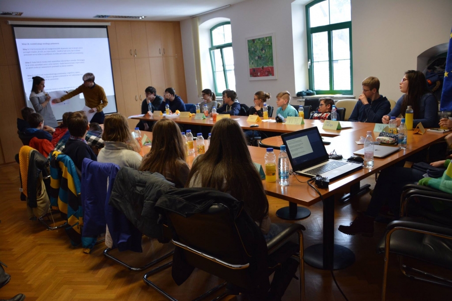 Na pomoč pri pripravi akcijskih načrtov sta jim priskočila Tina Mervic iz Mladinskega centra Idrija in Matevž Straus iz Občine Idrija. Zunanja sodelavca sta predstavitev začela z motivacijskimi zgodbami dobrih praks, s katerimi sta želela mladim pokazati zakaj je pomembno imeti akcijski načrt oziroma, še bolj pomembno, zakaj je potrebno stopiti v akcijo. Aktivnost sta navezala tudi na projekt GaYA, ki spodbuja povezovanje med mladimi in odločevalci pri procesih odločanja. Otroški parlament je odlična iztočnica za vzpostavljanje tovrstnega dialoga. Učence in njihove mentorje sta vodila preko strukturiranega procesa izpolnjevanja akcijskega načrta. Razmišljali so o tem kaj bodo spremenili in na kakšen način. Svoje ideje kako so tudi razvrstili na časovnem traku, tako, da so odgovorili tudi na vprašanje kdaj. Za konec pa so si delo razdelili in odgovorili še na vprašanje kdo. Vsak, ki je sprejel delovno nalogo je dobil košček sestavljenke (prepoznavni znak otroškega parlamenta). Ko bo nalogo opravil, bo košček vrnil mentorju in tako se bo z opravljenimi delovnimi nalogami sestavljanka sestavila in cilj vse bolj uresničeval.