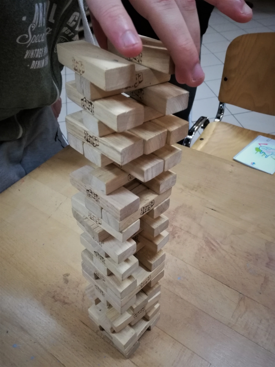 Uro prej smo začeli druženje namenjeno osebam s posebnimi potrebami, na katerem smo izvedli krajši kviz, nato pa se tudi z njimi naučili nove družabne igre in se preizkusili v skupinski gradnji lesenega stolpa.