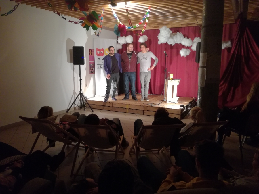 Na zadnji marčevski petek je bil na vrsti že drugi večer smeha. Nastopili so trije mladi komiki: Beno in Sašo Stare ter Rok Škrlep. Odlično so poskrbeli za razgibavanje naših trebušnih mišic in nam celo postregli z nekaj glasbenimi dodatki.