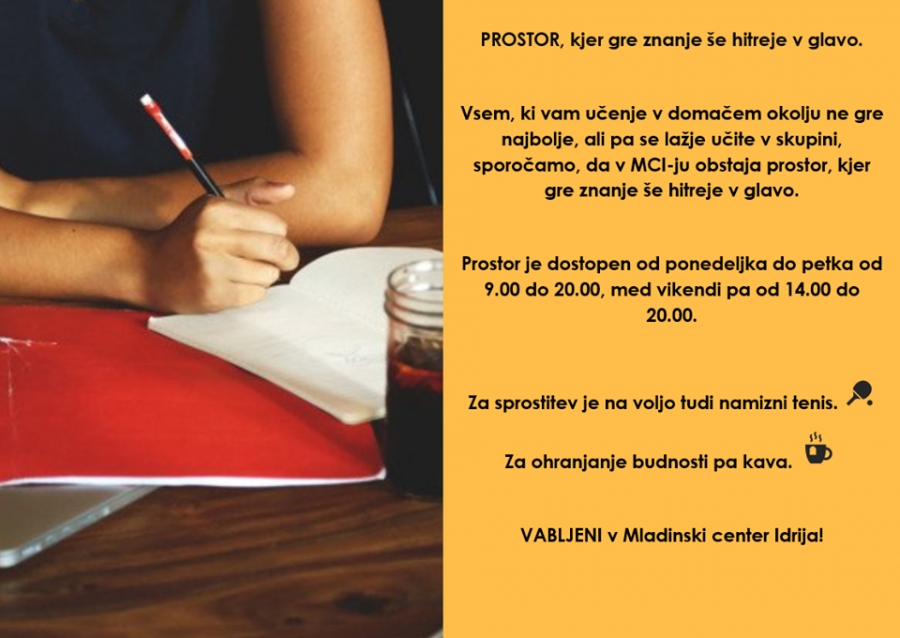 Če potrebujete prostor za učenje, lahko pridete v MCI.