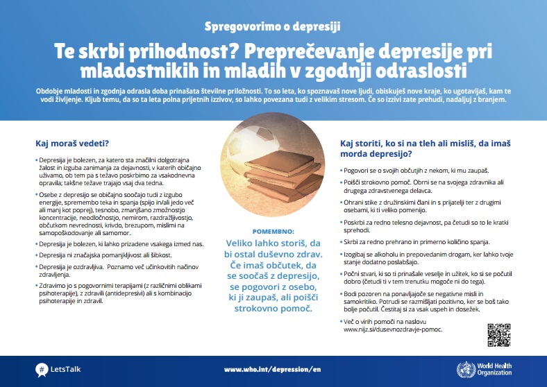 Prav ozaveščanje pa je ključnega pomena, da lahko lažje pomagamo sebi ali drugim. In da nismo ignorantski, ko pride do duševne stiske in osebi, ki resnično potrebuje pomoč govorimo, saj ni nič takega – just get better! Več o skrbi zase si lahko preberete tudi v priloženih dokumentih v priponki. Za mlade pa je zanimi tudi portal #tosemjaz.